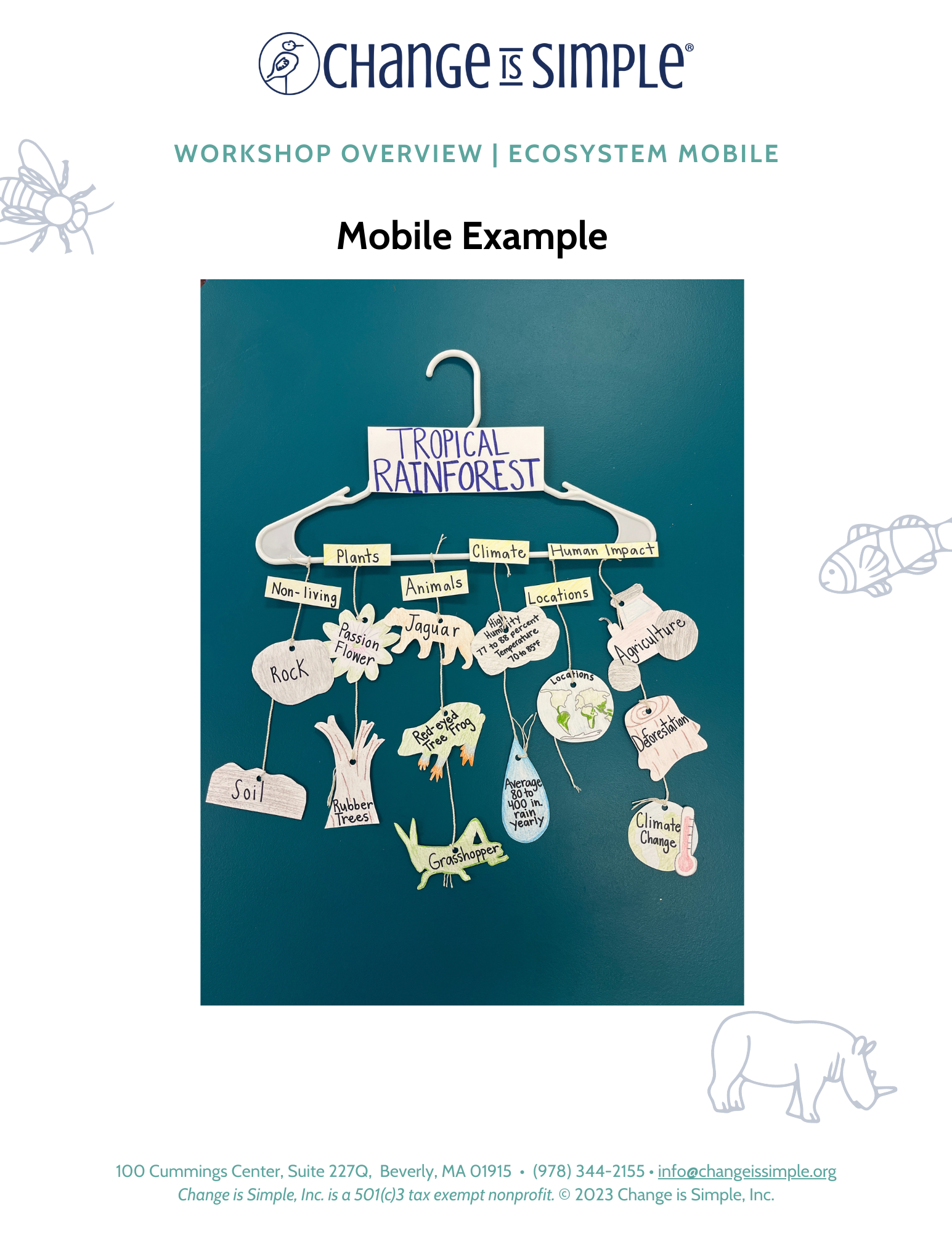 Create a mobile using paper, markers, and a clothes hanger, to explore different systems and parts of an ecosystem!